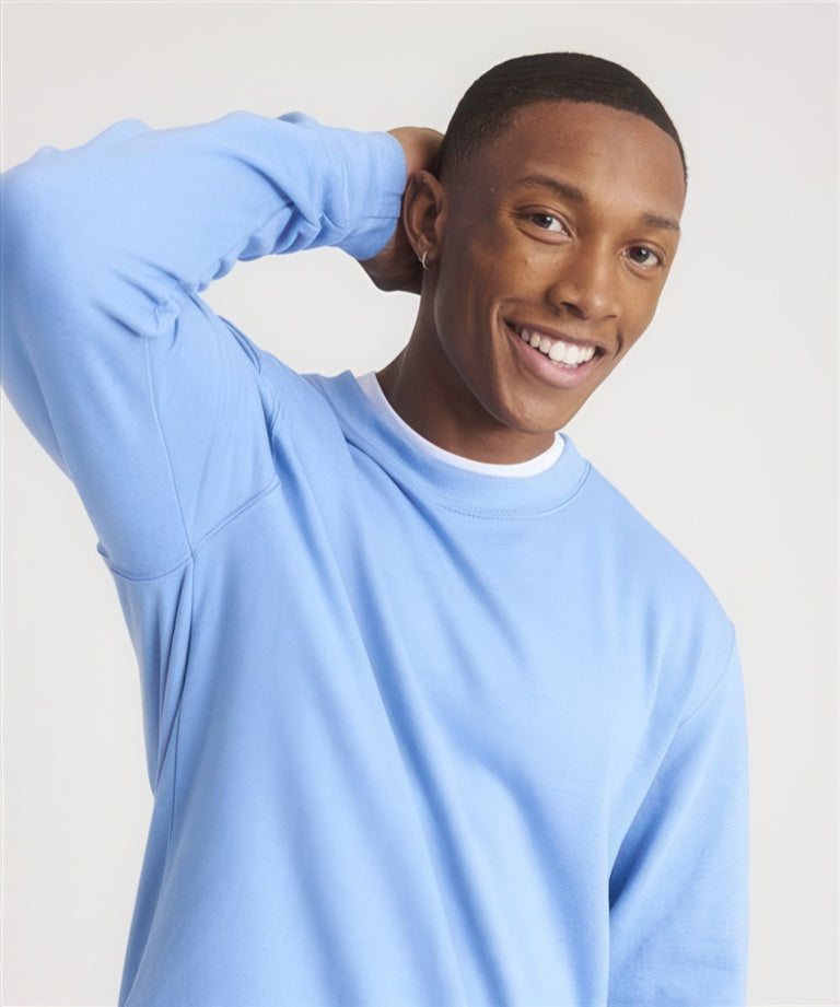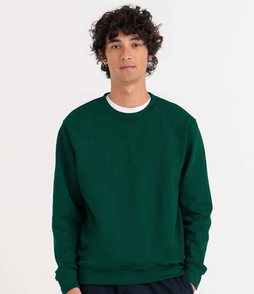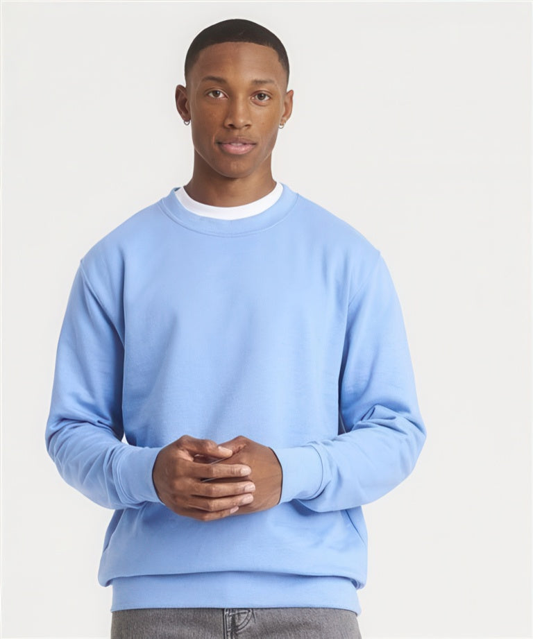 Crew neck sweat. Set-in-sleeves. Taped neck. Stylish fit. Soft cotton faced fabric creates ideal printing surface. Simple tear out label makes it perfect for rebranding. Twin needle stitching detailing. Ribbed collar, cuff and hem. Worldwide Responsible Accredited Production (WRAP) certified production. 40 great colours. Brushed inner fleece. WRAP certified. SEDEX certified. Vegan certified.